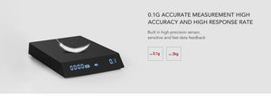 • COMPACT FOR ESPRESSO: Measuring 3.9 inches x 4.5 inches x 0.8 inches and weighing only 0.51 pounds, it's the ideal size to take it everywhere in a bag or even your pocket. Also, the gram scale is small and slim enough to fit on a drip tray of a compact home espresso machine as well as pour over coffee.